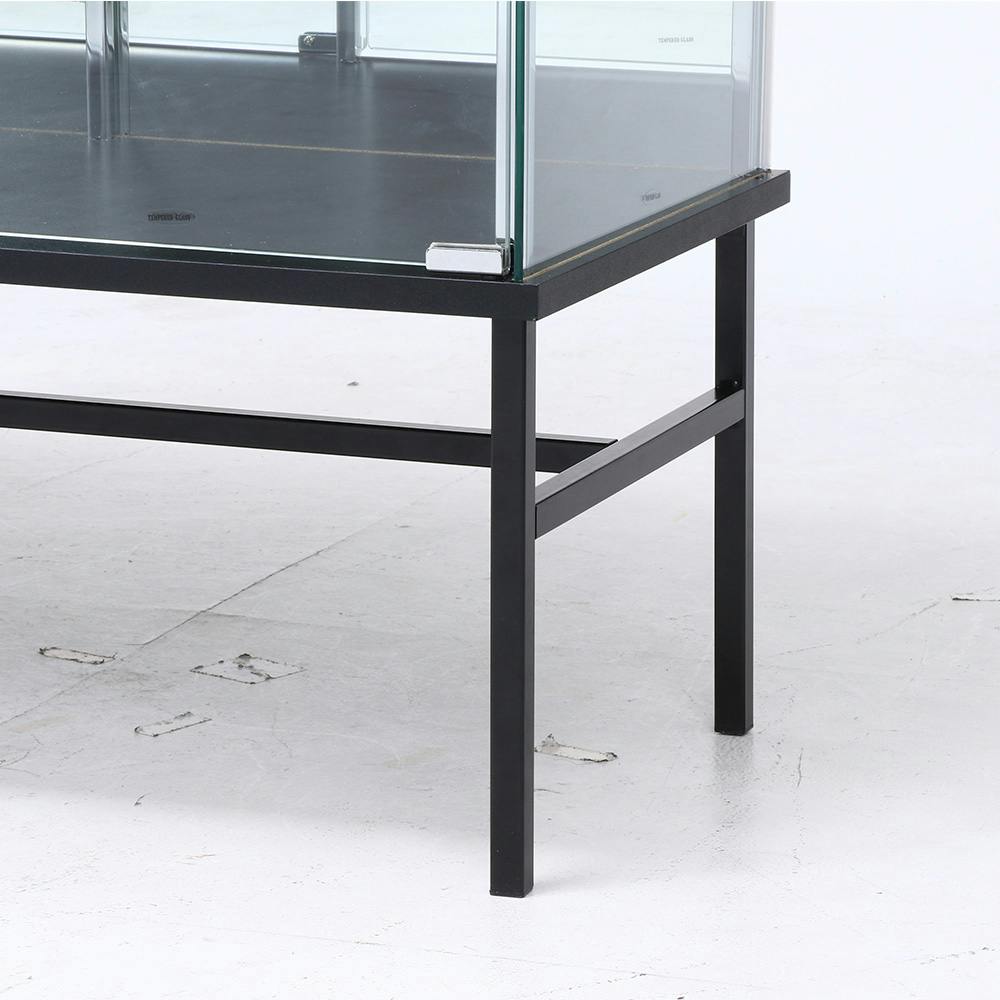 展示物の後ろも見える背面ミラータイプのボード型ガラス張りコレクションケース。掃除のしやすい脚付き型。