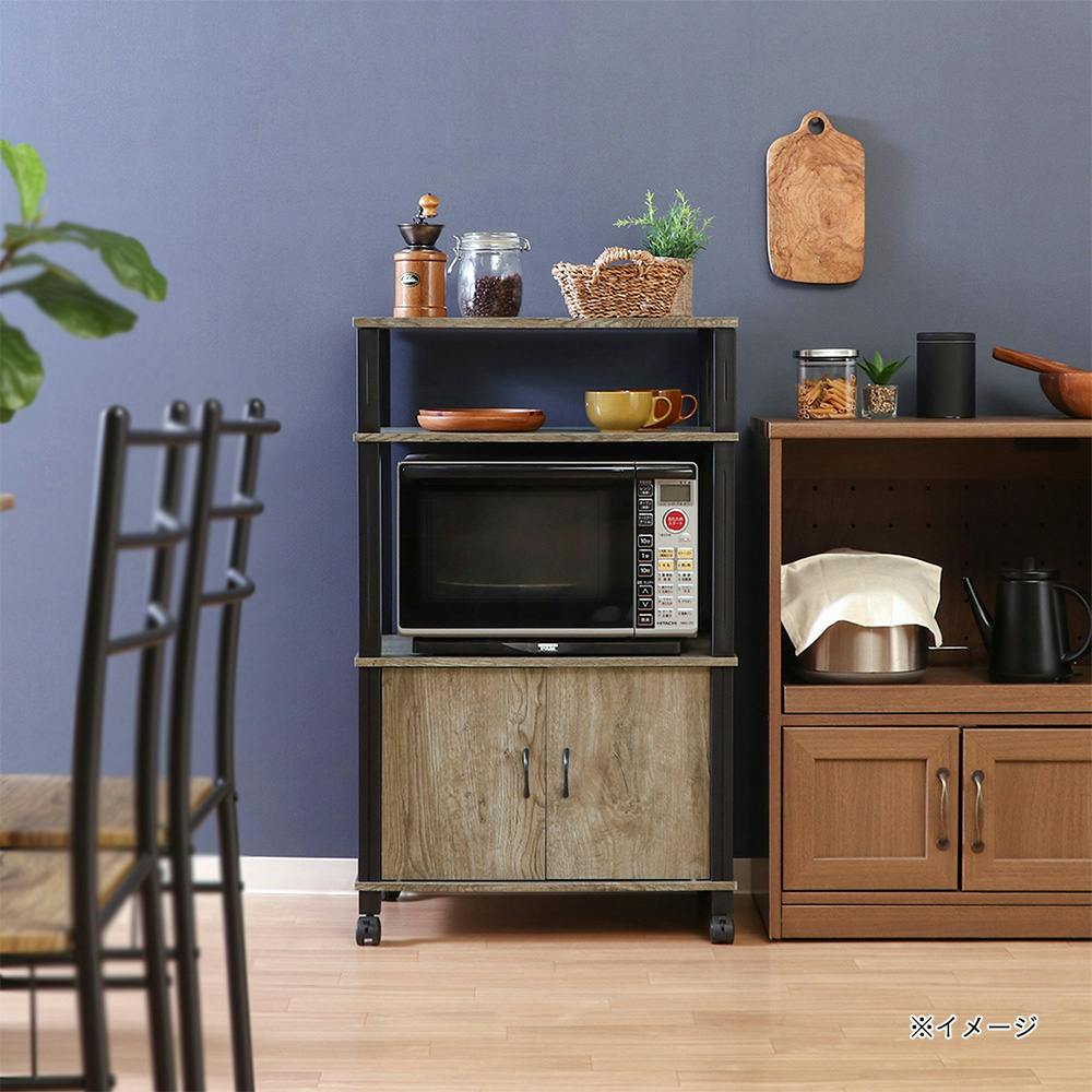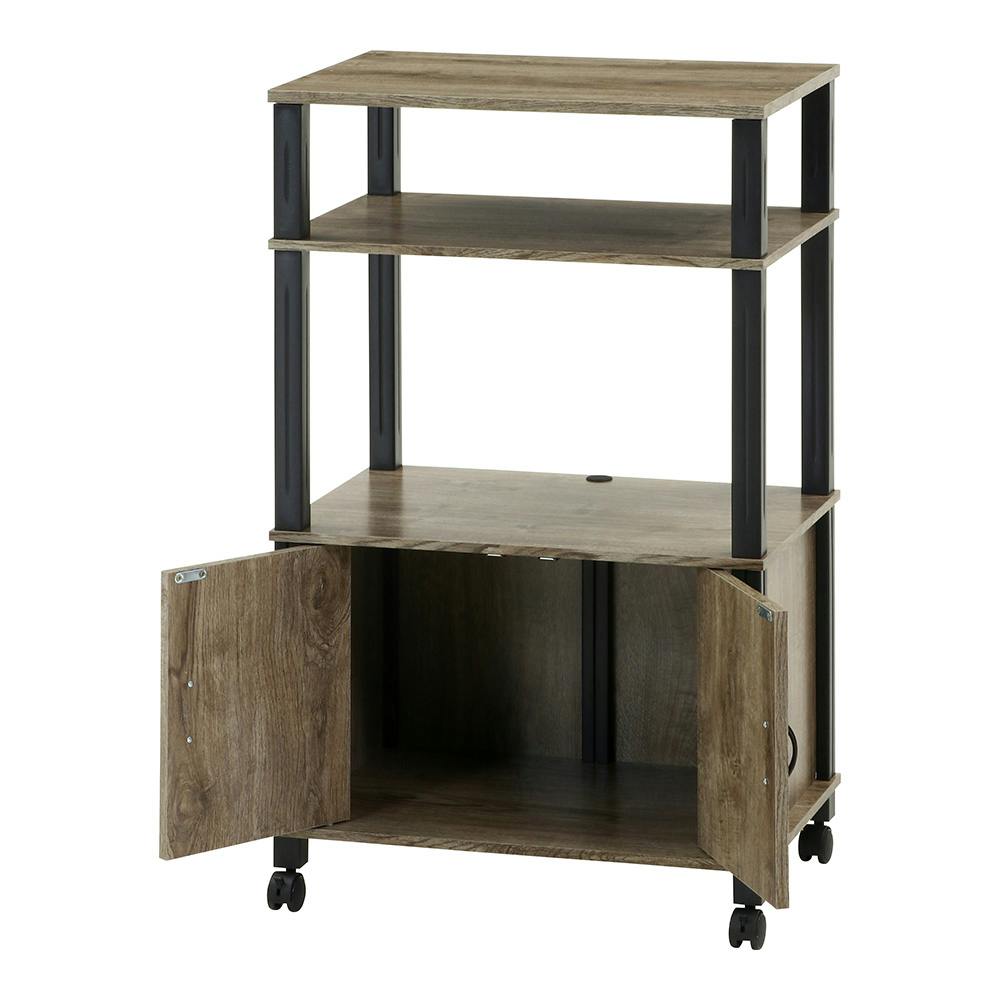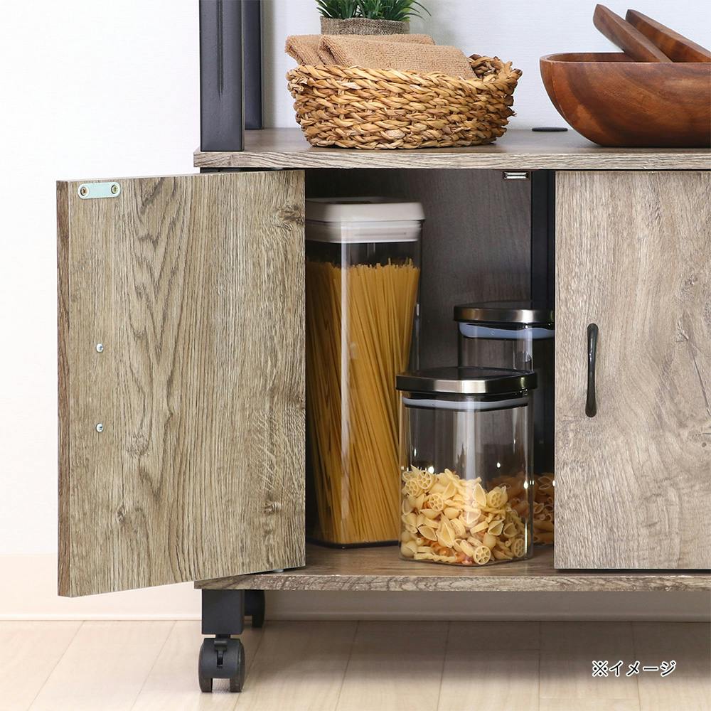 扉付き収納とオープンスペースでマルチな使い方が出来るキャスター付きワゴン。