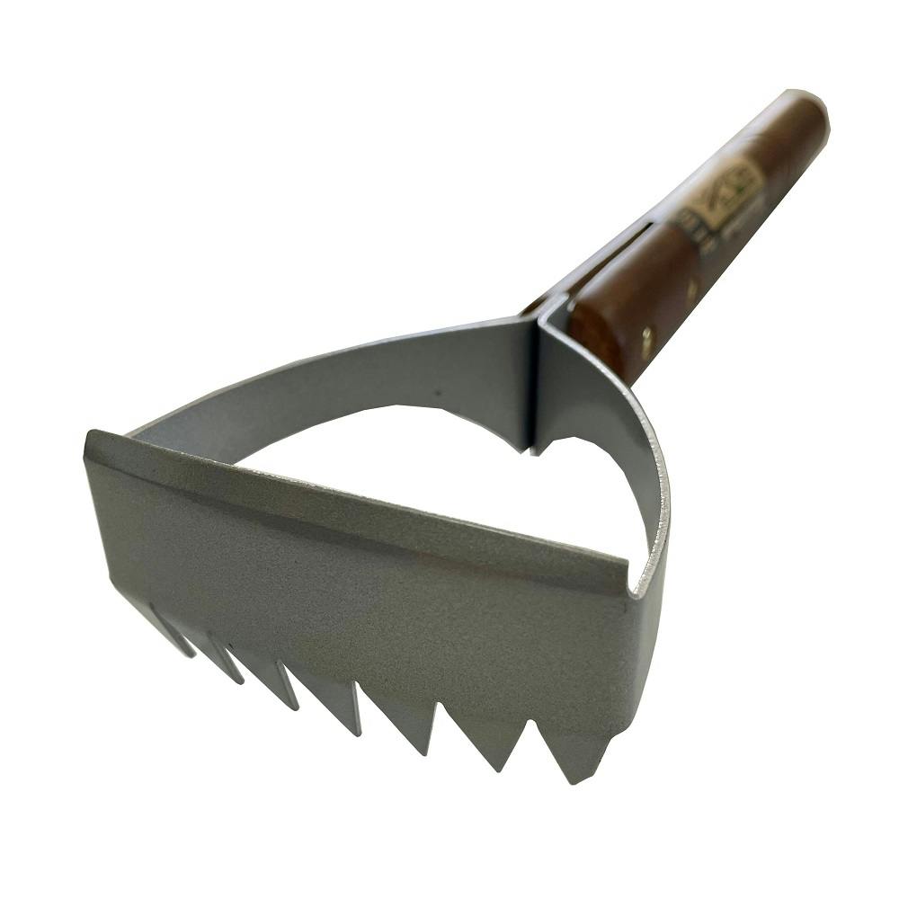 ●座ってする除草作業に理想的な刃の角度と鋭いギザ刃。●平刃、ギザ刃の2種類の刃を使い分け。
