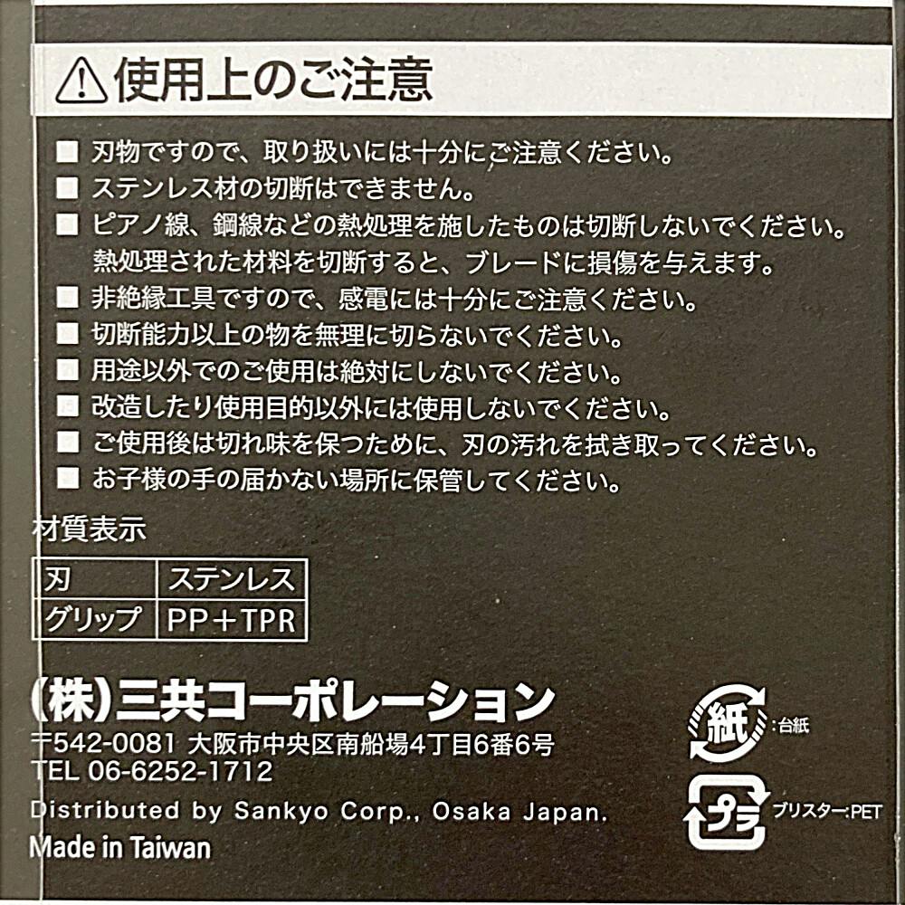 ●アルミ板:1.2mmまで ●トタン板・ブリキ板:0.8mmまで ●銅板:1.0mmまで ●電気コード:外径φ10mmまで(φ1mm×3芯) ●プラスチック板:3.0mmまで ●ゴム板・皮革:10mmまで ●アルミ線・銅線:φ3.5mmまで ●針金:φ1.0mmまで ●水道ホース:外径22mmまで