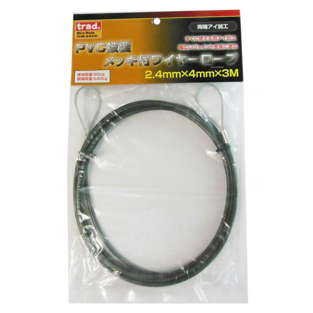 trad PVC被覆メッキ付ワイヤーロープ 両端アイ加工 THW-2443I 2.4×4 3m