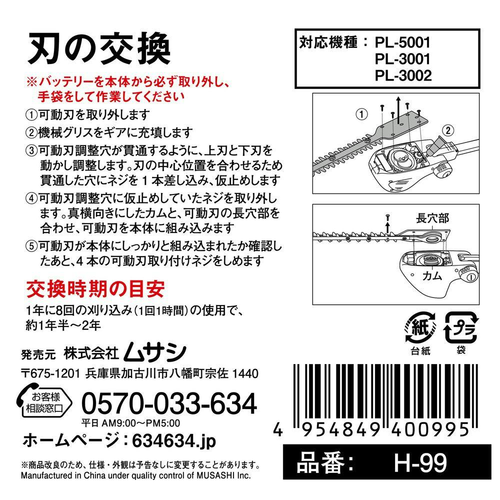 充電式 ポールバリカン18V(PL-5001)専用の替刃