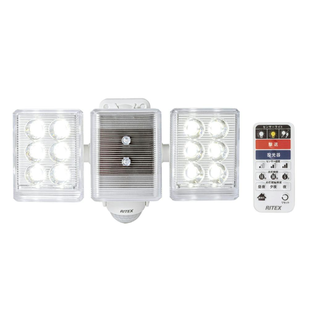 RITEX LEDセンサーライト 9W 2灯 LED-AC2018 1500ルーメン 防犯 防雨タイプIP44 屋外設置可 多機能・小型 人感明暗センサー