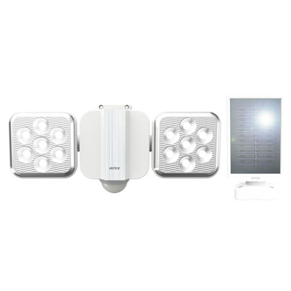 RITEX 5W 2灯フリーアーム式LEDソーラーセンサーライト S-220L 900ルーメン 防犯 防雨タイプIP44 屋外設置可 電池寿命約2年