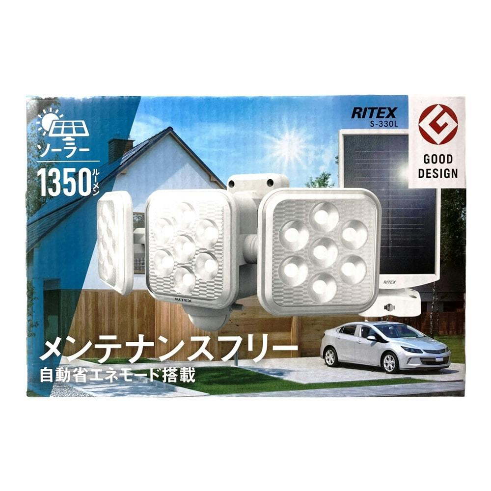 RITEX センサーライトソーラー 5W 3灯 1350ルーメン S-330L 防犯 充電式 防雨タイプIP44 屋外設置可 人感明暗センサー