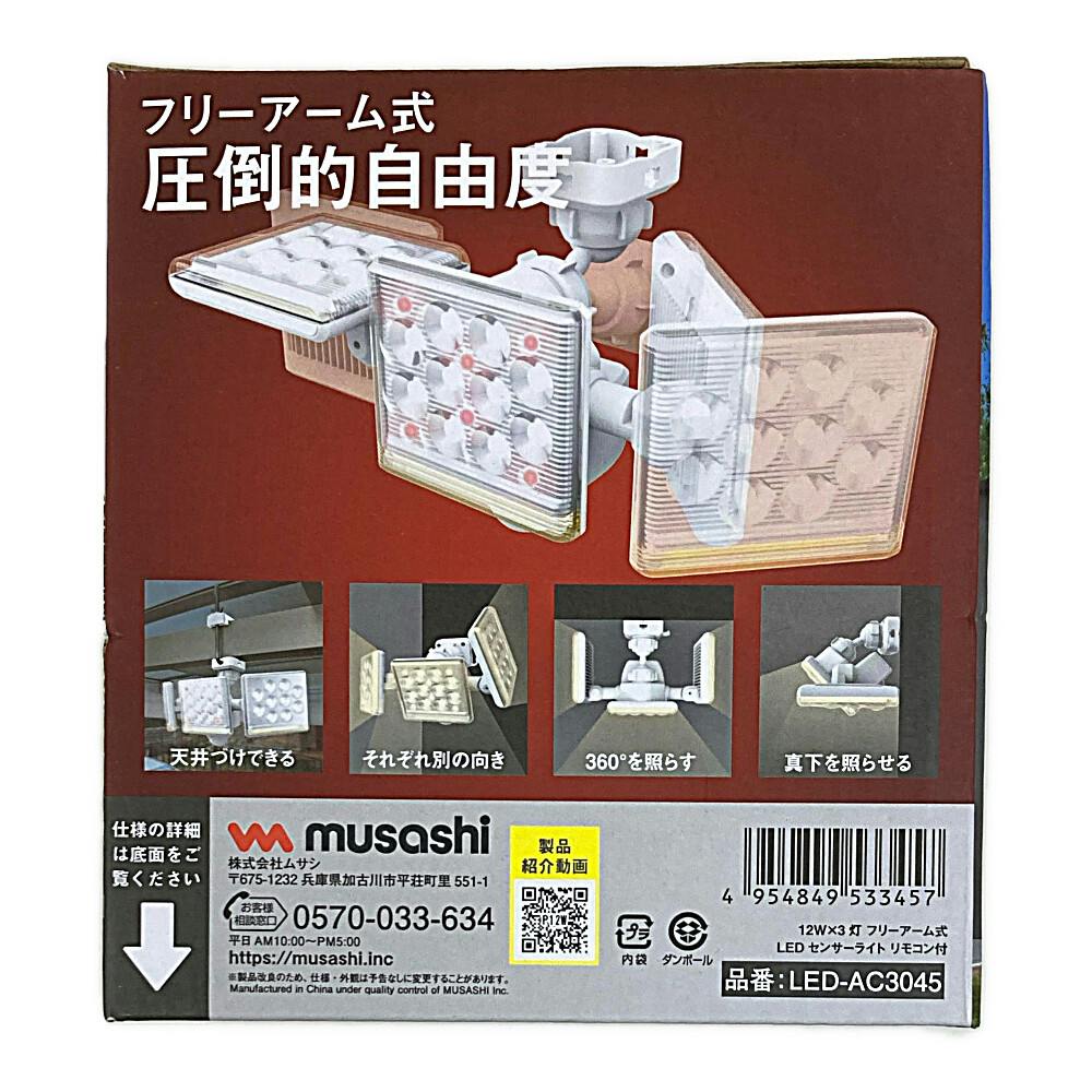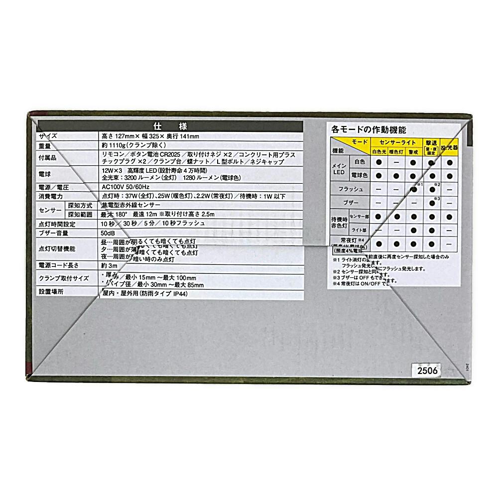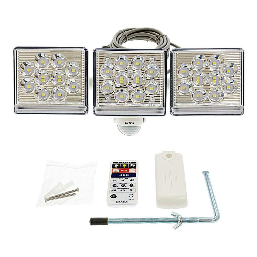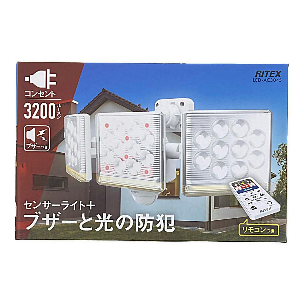 RITEX センサーライト 高機能A式C12W 3灯 3200ルーメン 3045 LED-AC3045 防犯 防雨タイプIP44 屋外設置可 人感明暗センサー