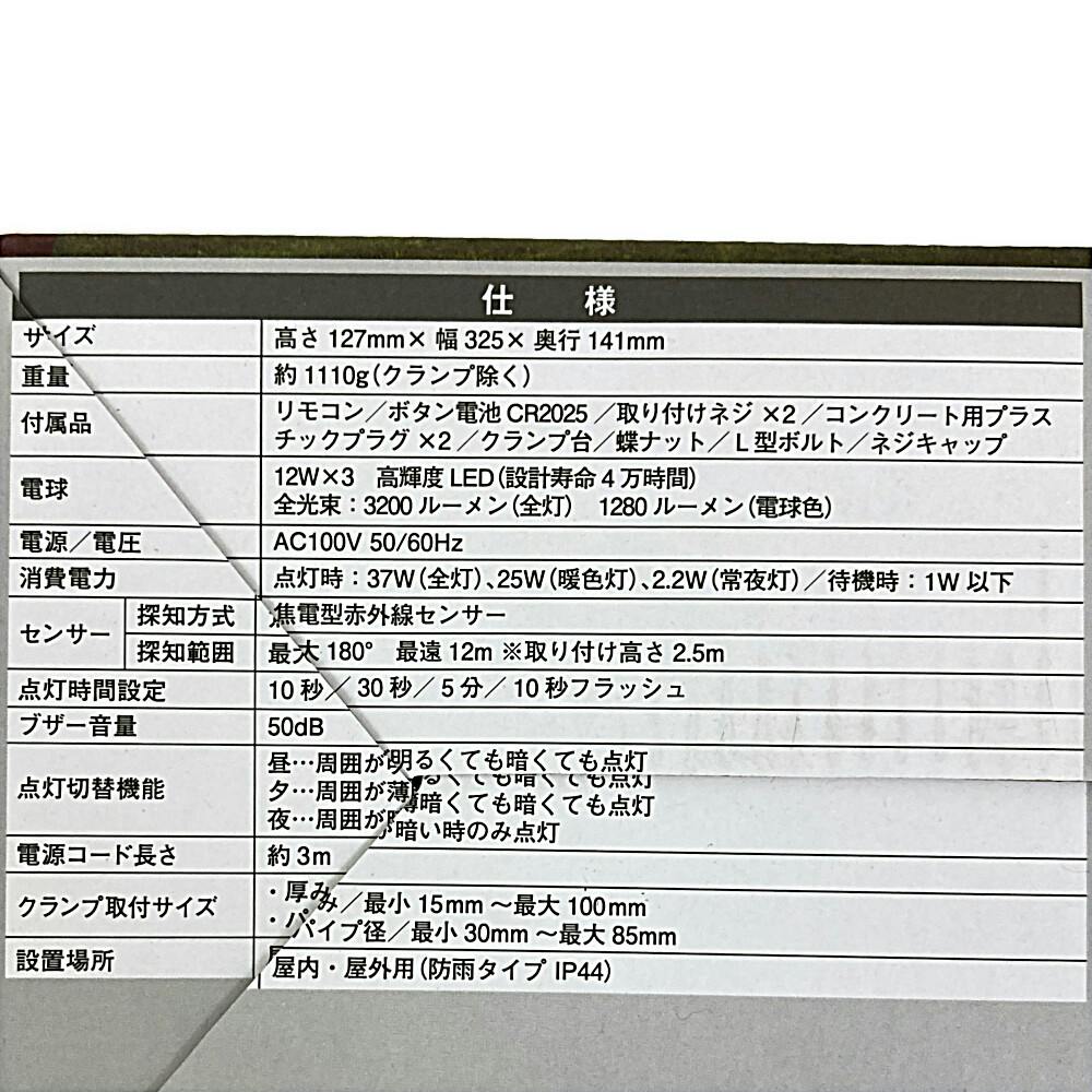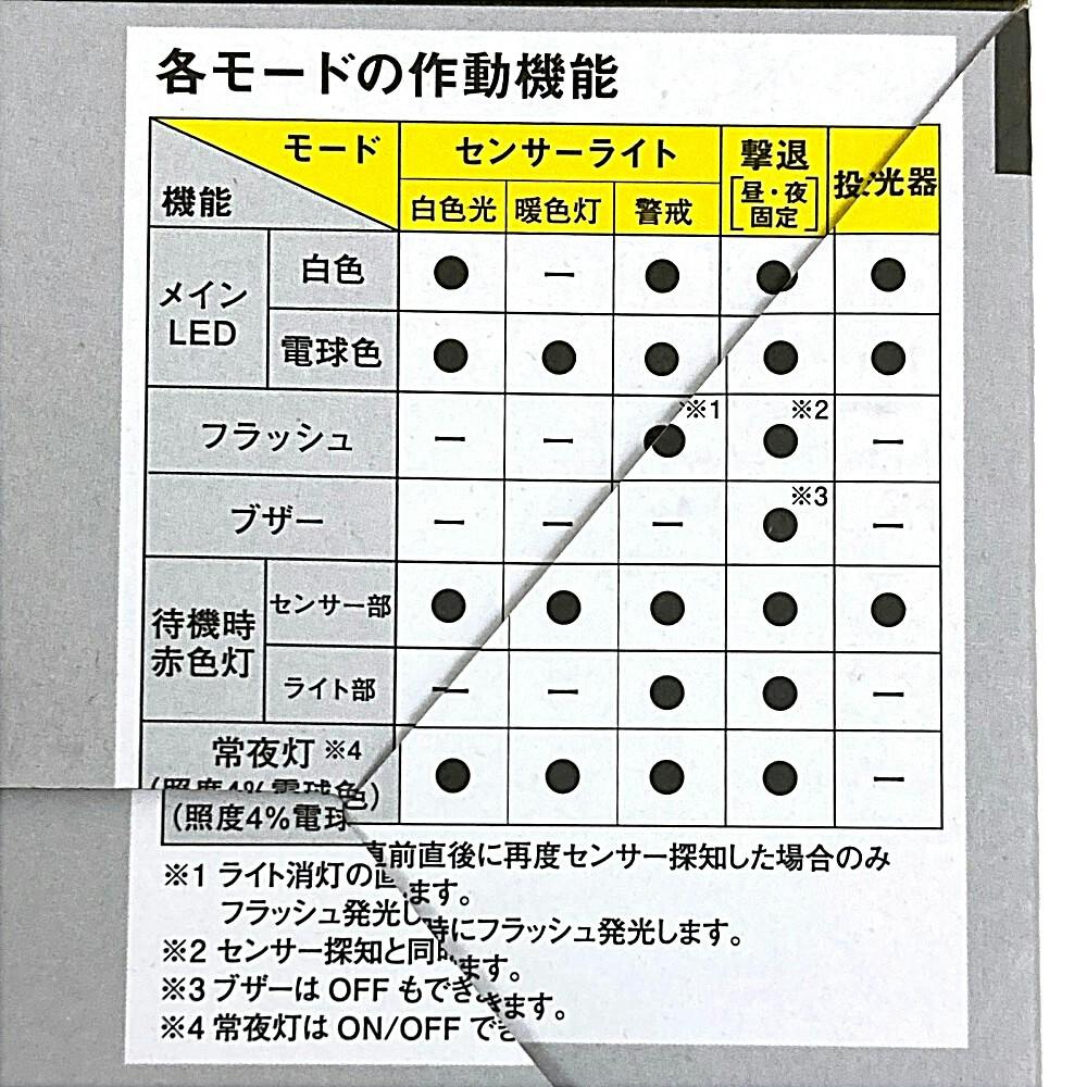 ●ブザーと光の防犯、遠隔操作できるセンサーライト●あかるい白色(100%)●やさしい暖色(40%)●フラッシュ+ブザーで強力な防犯対策●投光器機能●ほんのり常夜灯(4%)●赤LEDで24時間警戒●フリーアーム式