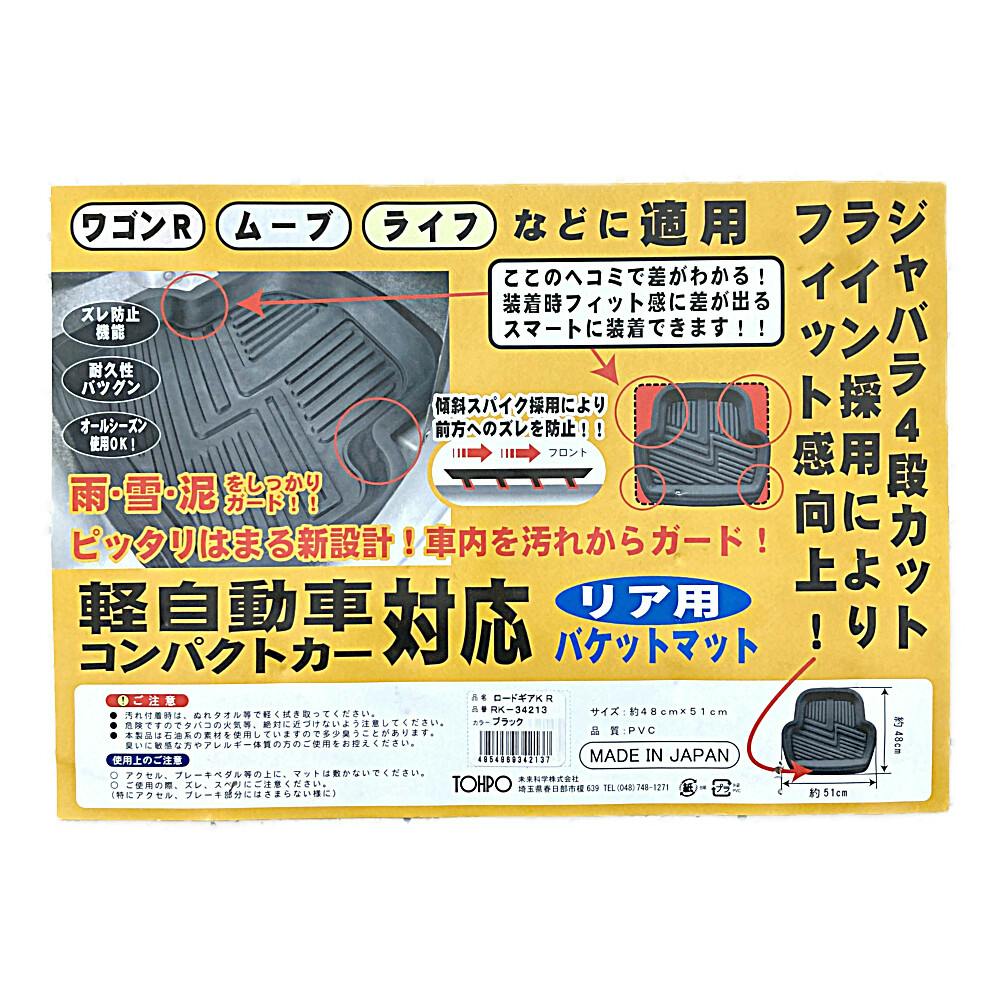 ●軽自動車・コンパクトカー対応リア用バケットマット●ズレ防止機能●耐久性バツグン●オールシーズン使用OK!●雨・雪・泥をしっかりガード!!●ピッタリはまる新設計!車内を汚れからガード!