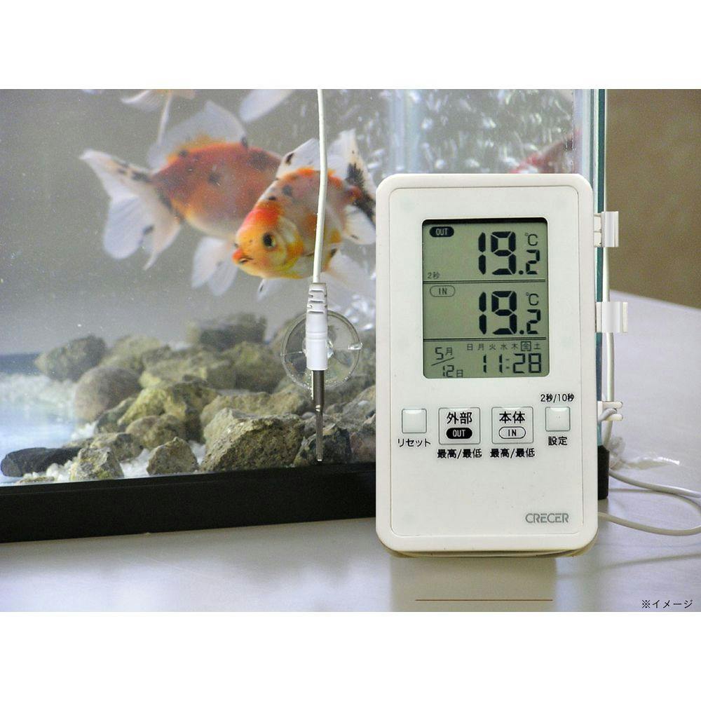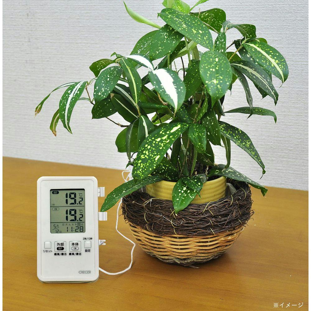 ●外部センサーと本体の最高・最低温度と測定日時を自動記憶●本体は防滴(IPX4)●外部センサーは完全防止(IPX7)●コード長は約3mで本体に巻き付けて収納可能●月、日、曜日、時計を常時表示●卓上、壁掛け、スチール面にも設置可能