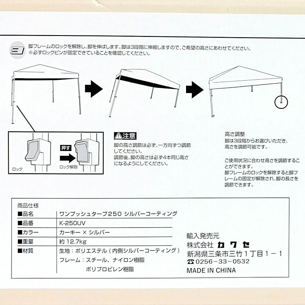 ワンプッシュタープ 250cm シルバーコーティング K-250UV
