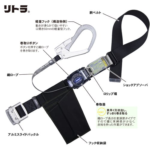 【CAINZ-DASH】藤井電工 胴ベルト型墜落制止用器具(巻取タイプ)ロック機構なし リトライト 黒 Mサイズ 幅50MM×長さ1200MM TB-RL-593-BLK-M-BP【別送品】
