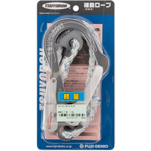 【CAINZ-DASH】藤井電工 胴ベルト型墜落制止用器具用補助ロープ 八つ打ちロープ 連結環FL-51・フックFS-93-1 D環止めなし TBL-AT-5931C-N-BP【別送品】