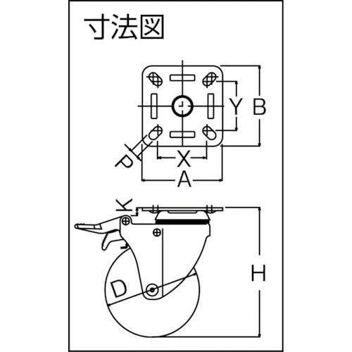 【CAINZ-DASH】ハンマーキャスター 旋回式ゴム車輪(ナイロンホイール・ボールベアリング)100mm トータルロック 915M-RB100【別送品】