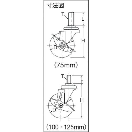 【CAINZ-DASH】ハンマーキャスター ねじ込み式 旋回式ゴムキャスター 100mm ストッパー付 413SA-R100【別送品】