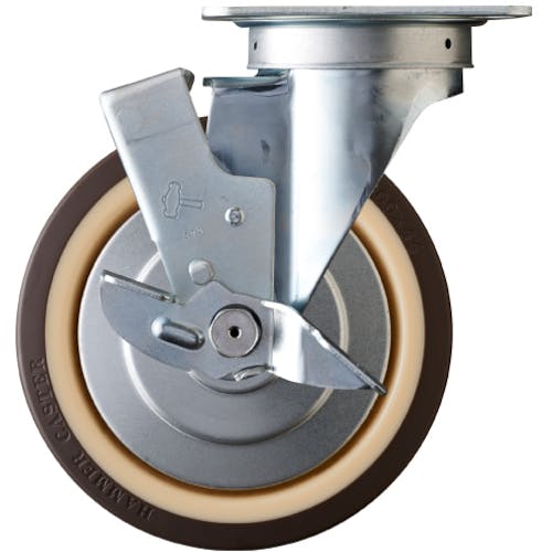 【CAINZ-DASH】ハンマーキャスター 旋回式ウレタン車輪(ナイロンホイール・ボールベアリング)200mm ストッパー付 419S-UB200【別送品】