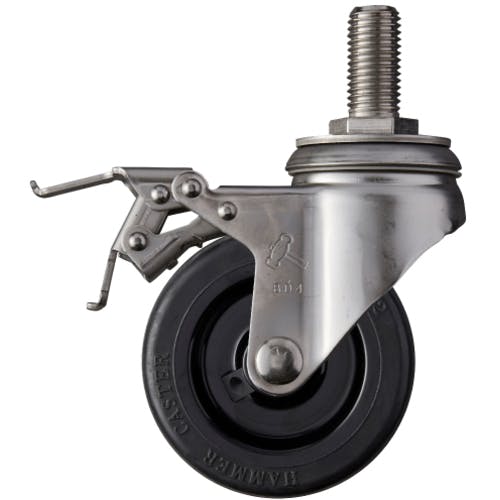 【CAINZ-DASH】ハンマーキャスター SAシリーズオールステンレス 旋回式ゴム車輪(ナイロンホイール)100mm ストッパー付 315SA-RU100【別送品】