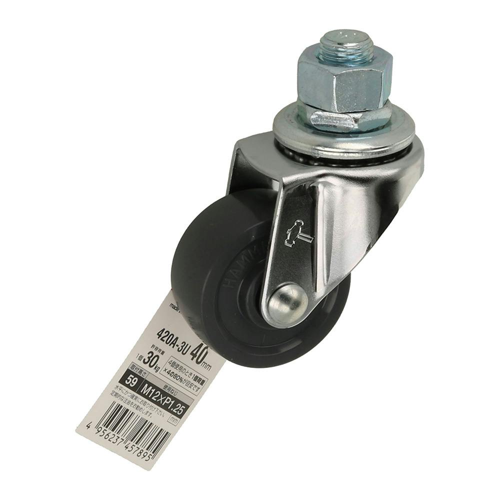 ハンマーキャスター Aシリーズ ねじ込み 自在 M12 エラストマー車 40mm 420A-30U40