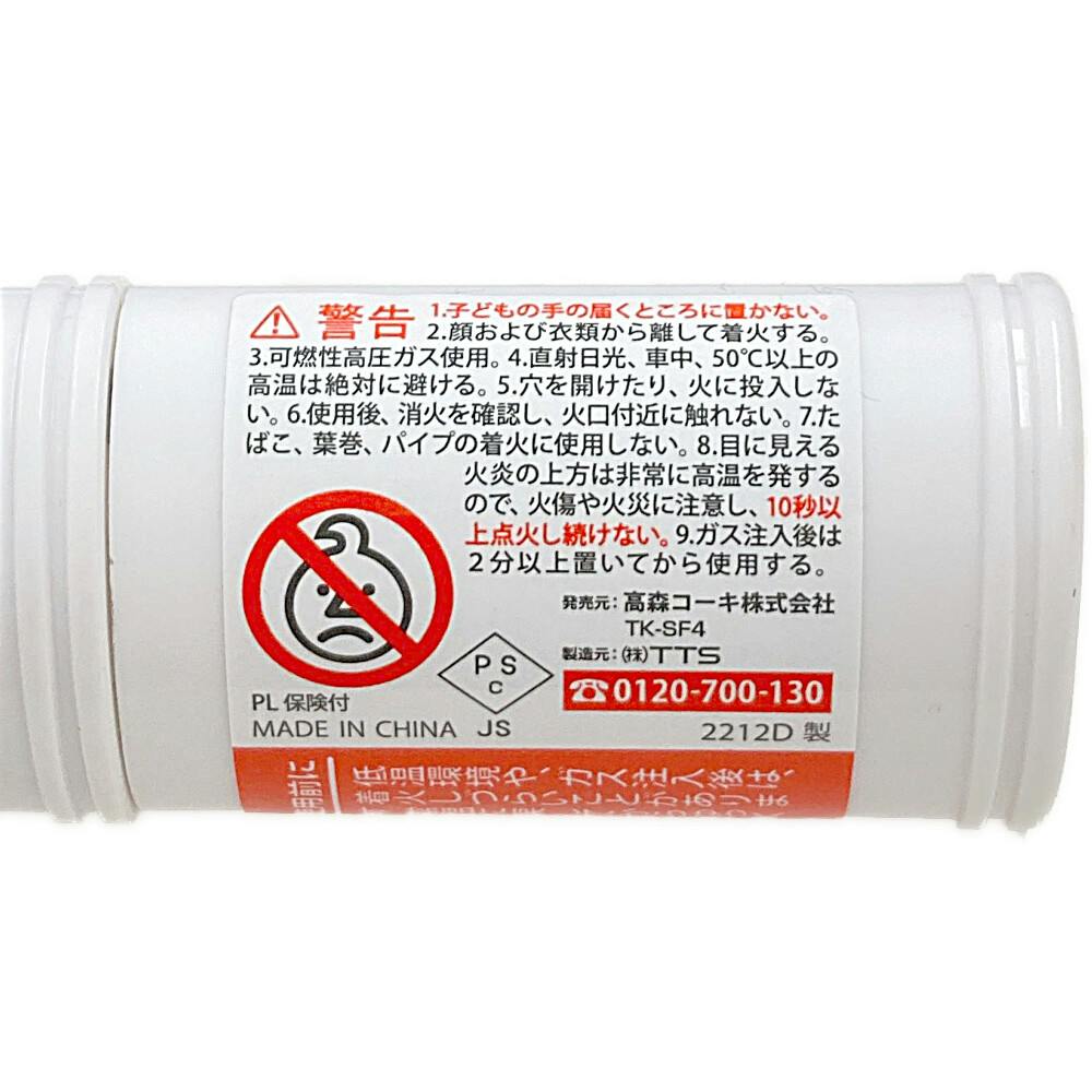 ●着火後の炎口付近は大変熱くなっています。 着火後に炎口付近に触れると火傷の恐れがありますので注意してください●使用環境温度が低い場合(概ね10℃以下)またはガス注入直後は本気が冷えている為、着火しない場合があります。等