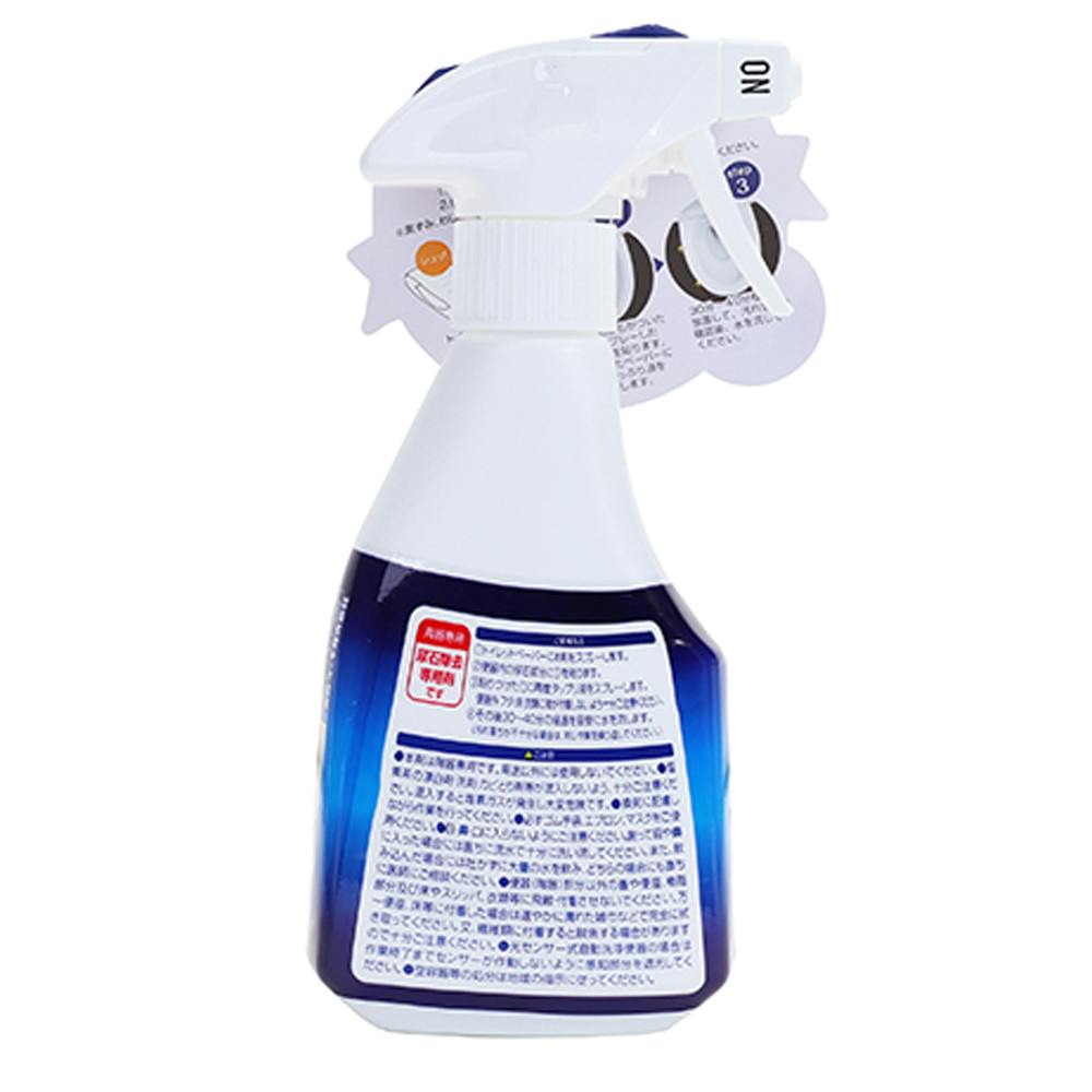1.トイレットペーパーに本剤をスプレーします。 2.便器内の尿石部分に①を貼ります。 3.貼りつけた①に再度タップリ液をスプレーします。 便器外・フタ・床・衣類に液が付着しないよう十分ご注意ください。 4.その後30~40分の経過を目安に水を流します。