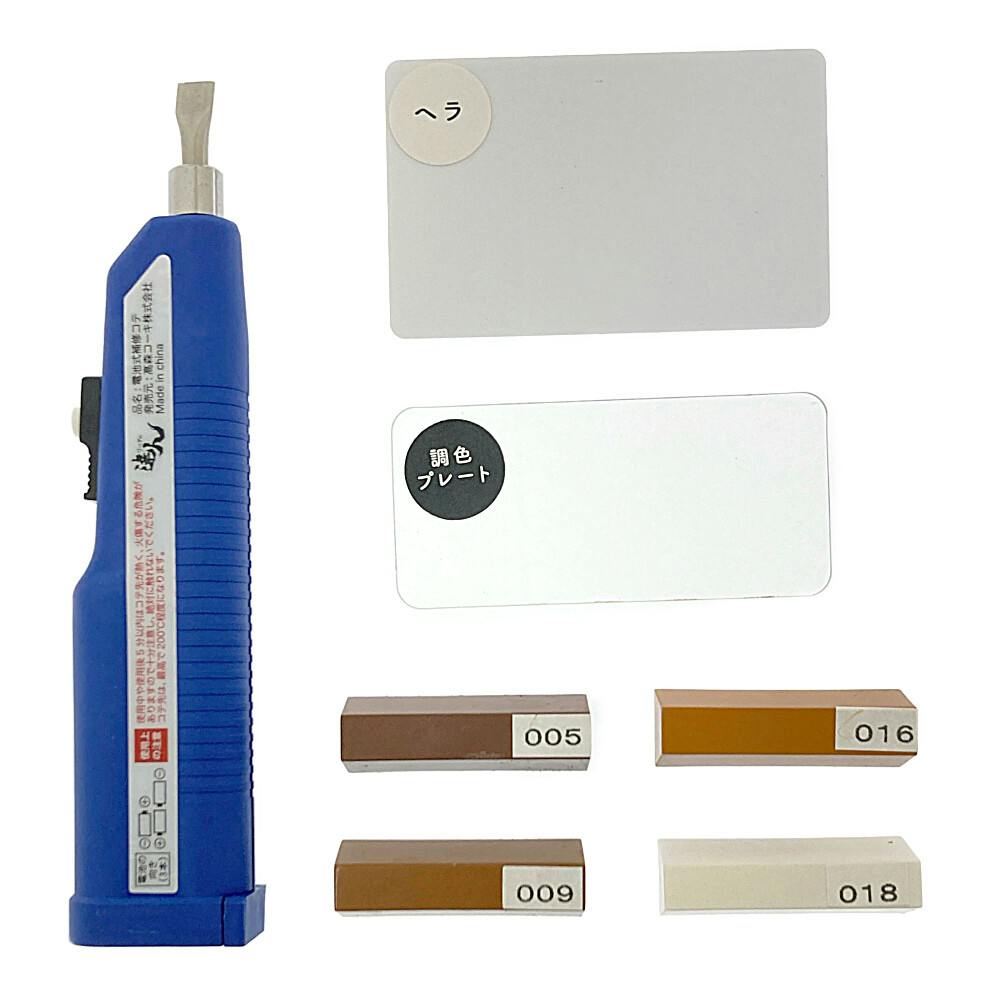 ●ホットスティック4種(充填補充剤)●専用電池式補修コテ●専用ヘラ●調色プレート