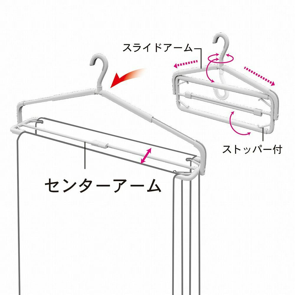 本品はポール径32mm以下のパイプハンガー、物干し竿でご使用ください。センターアームは補強用ですので、センターアームだけにタオルを掛けないでください。
