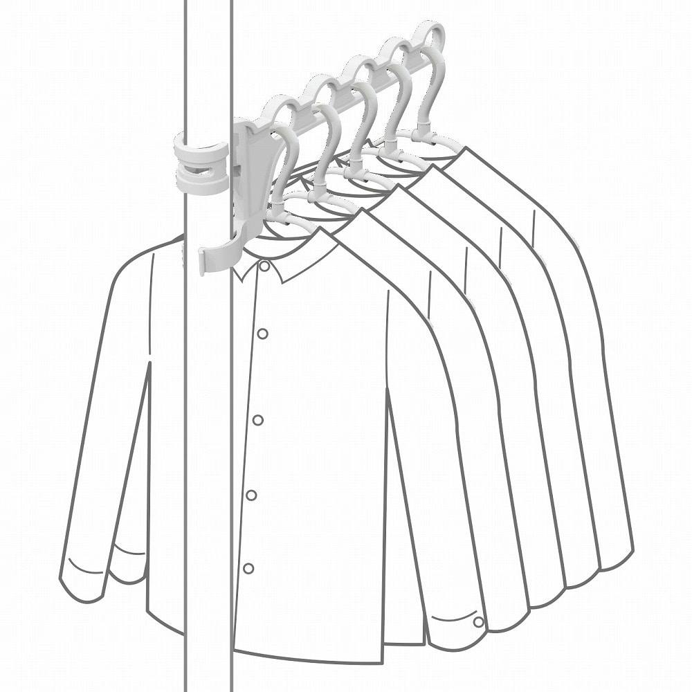 ●パイプハンガーの支柱に取り付けて「干し場」をプラス! ●ひっかけて簡単設置。洗濯物干しにも、ちょこっと掛けにも便利です。