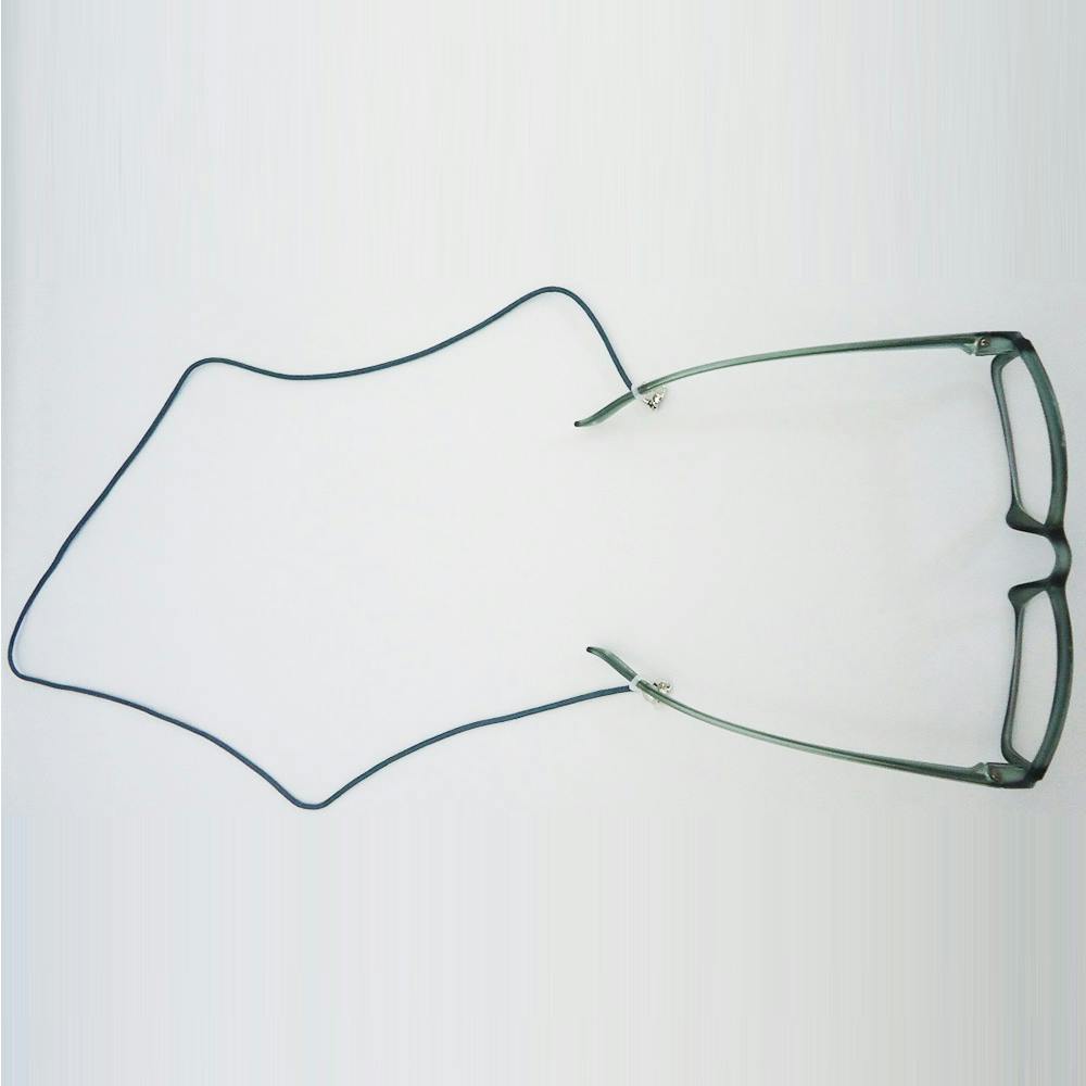 ゴム輪をテンプルに通しアジャスターをテンプル側に締めて下さい。チェーンを首などにかければメガネ不使用時に身に着けて置く事ができます。