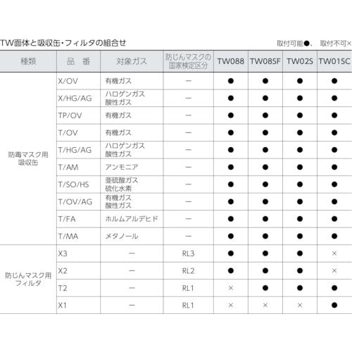 防毒マスク:第TN494号、防じんマスク:第TM680号(T2取付時)、第TM641号(X3取付時)、第TM640号(X2取付時)