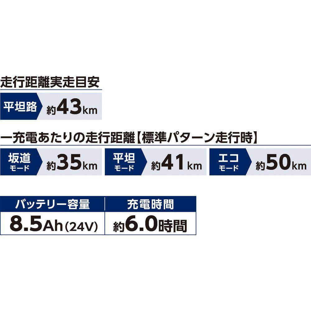坂道モード 約35km 平坦モード 約41km エコモード 約50km
