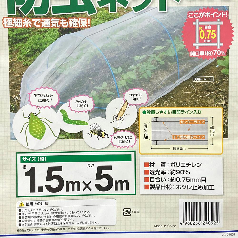 ダイオ化成 菜園用防虫ネット0.75 1.5m×5m 0.75mm目合い