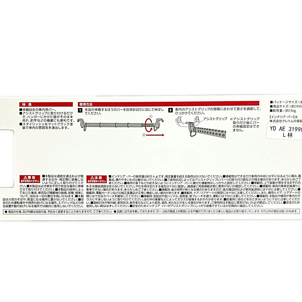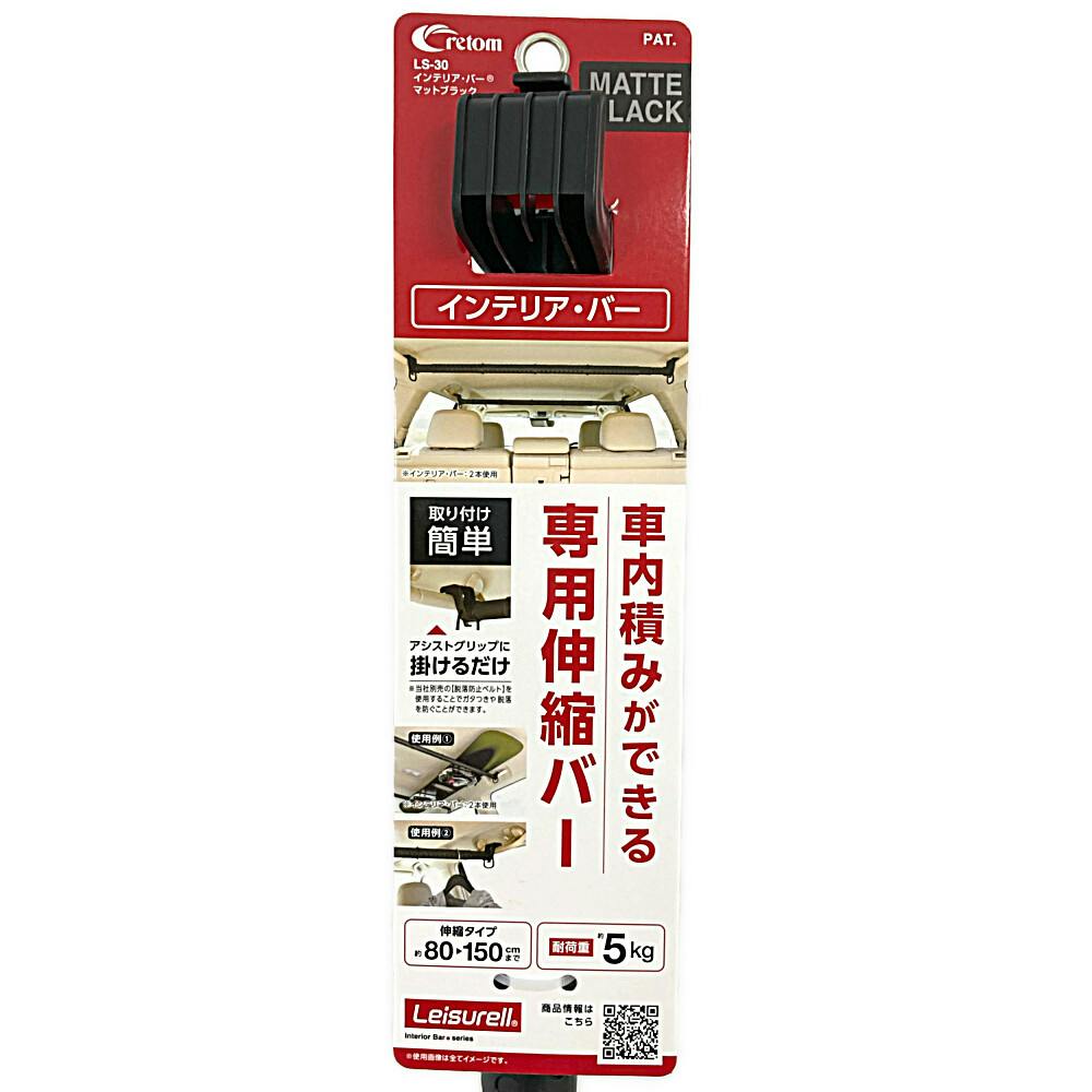 ●伸縮自在の車内用バー ●アシストグリップに取り付けるだけで、ハンガーにかけた服がそのまま吊れ、釣り竿などの積載にも便利です ●スタイリッシュなマットブラック塗装で車内の雰囲気を演出します