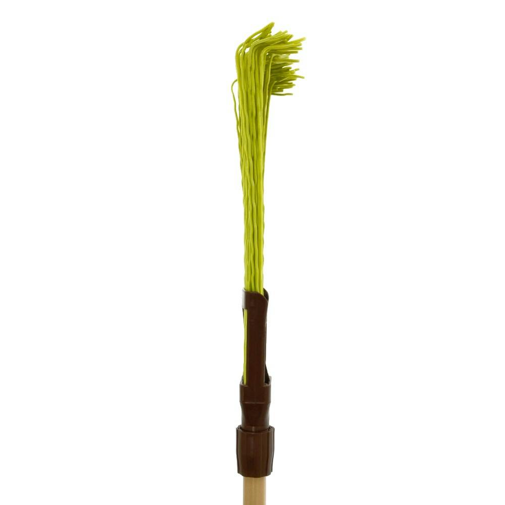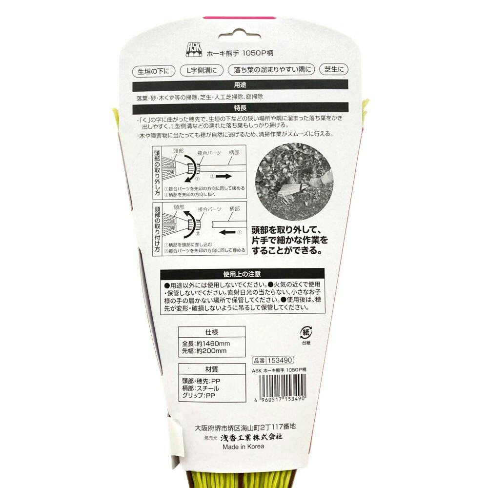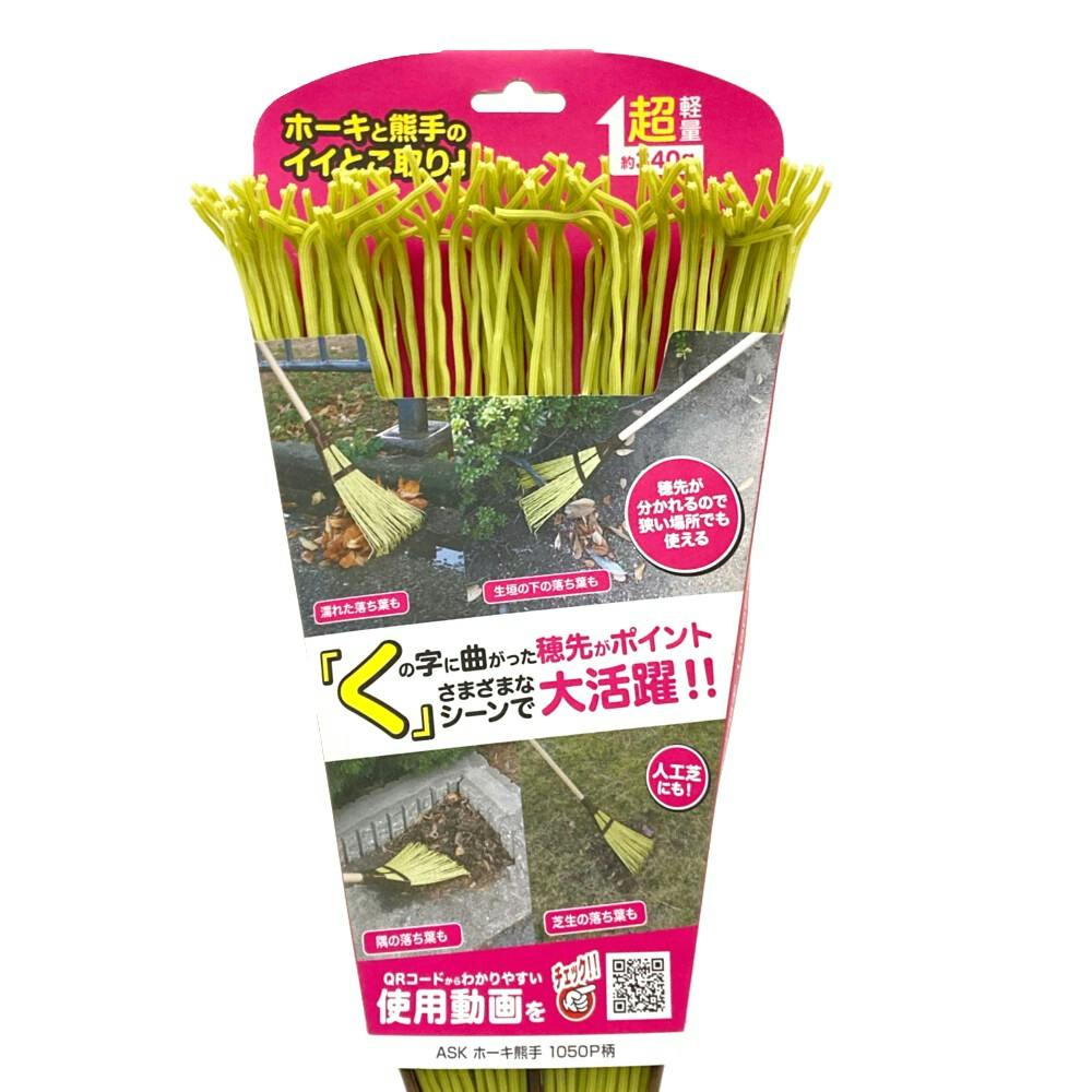 穂先が抜けにくい処理を施している。穂先が固いため思い切り履けて力が伝わりやすい。L型側溝等の濡れた落ち葉もしっかり掃ける。頭部を取り外して片手で細かな作業をすることができる。
