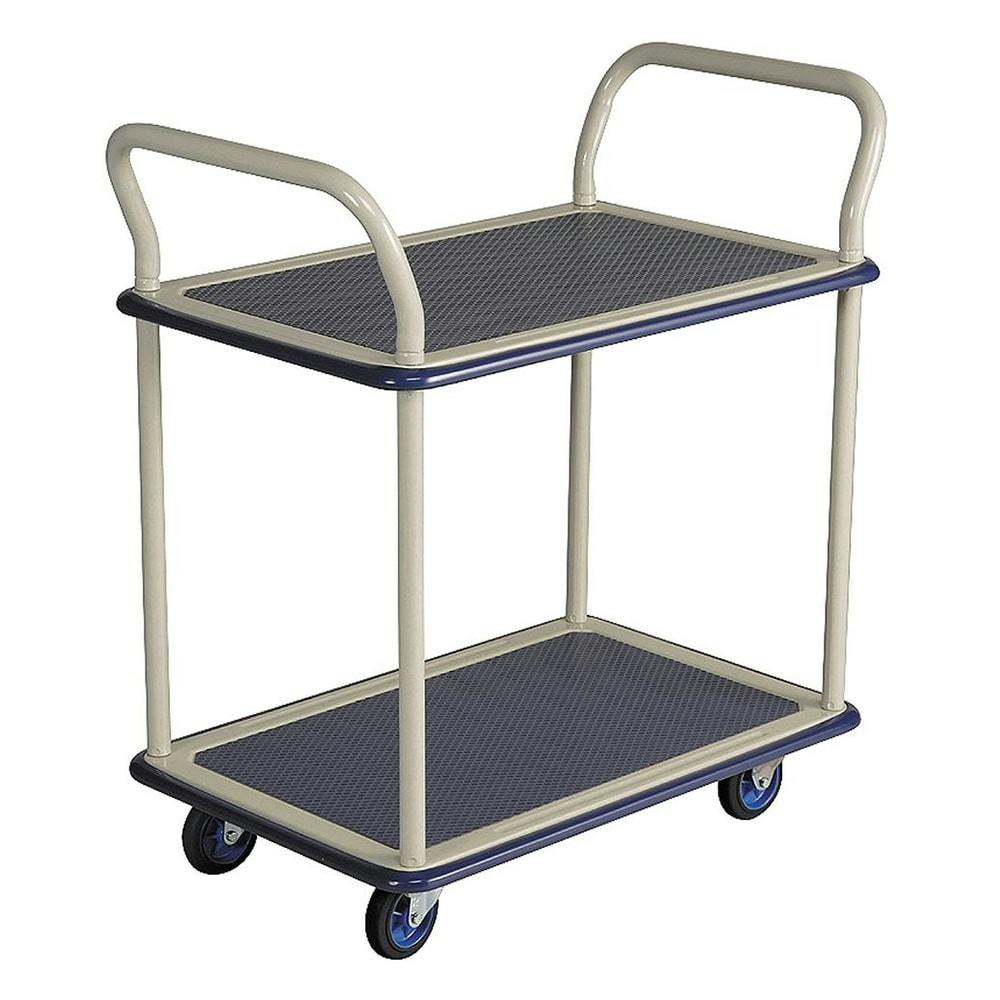 荷台の材質にハイテン鋼を採用、従来品と同強度で約15%の軽量化を実現したスチール製台車です。●タイヤはクッション性・静粛性・耐候性に優れたブタジェンラバー(BR)を採用しています。●台座周囲はクッションゴム、積載面にはすべり防止マットを装着しています。