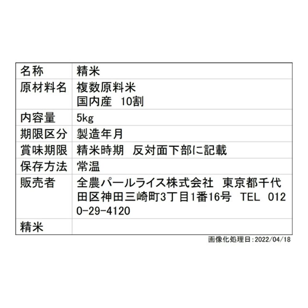 パールライスのお米 国内産 5kg