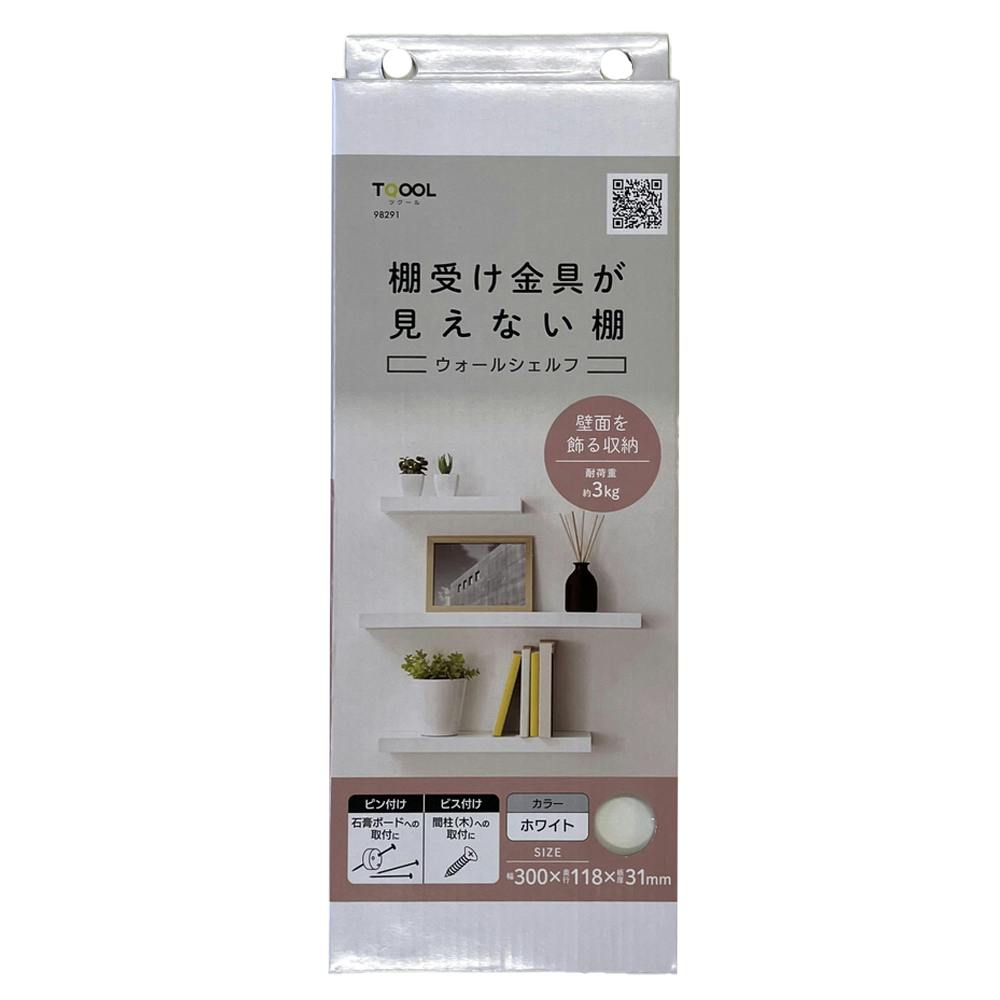 TQOOL ツクール 棚受けの見えない棚 ウォールシェルフ ホワイト 幅300mm×奥行118mm×厚さ31mm