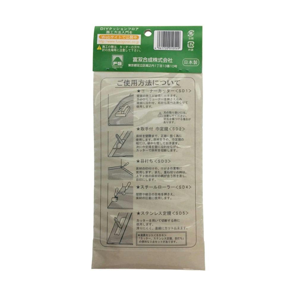 床材を壁際まで正確に敷く為に使用します。床材を予め、巾定規の幅だけ壁から離しておきます。次に巾定規を壁に沿わせながらカッターで床材を切断します。