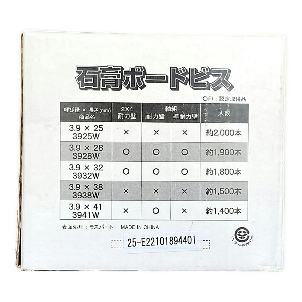 石膏ボードビス 3.9×25mm 2000本 徳用