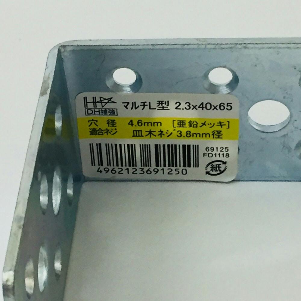 • マルチ金物 L型 ユニクロメッキ 2.3×40×65×65