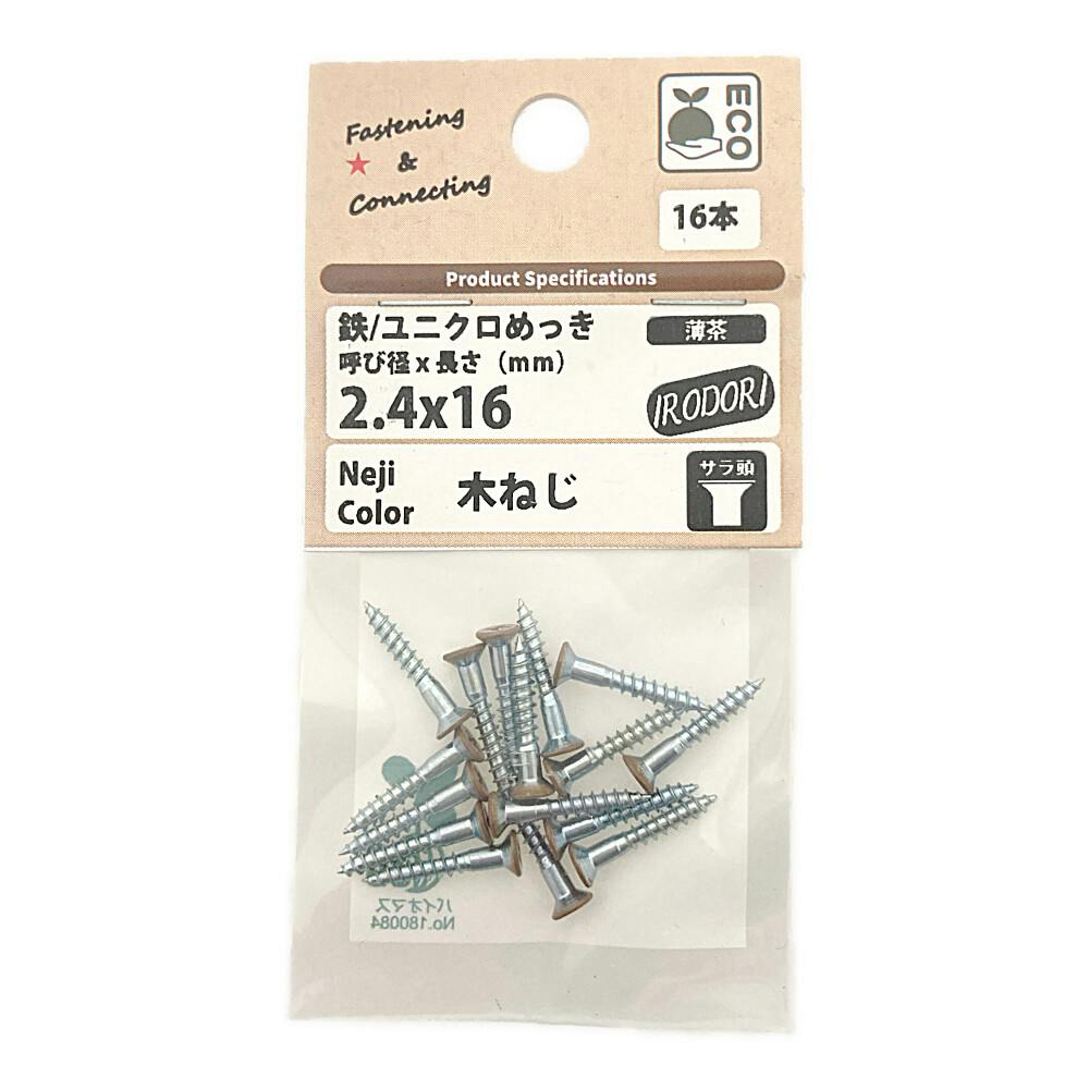 BMネジカラー木ねじ 皿頭 鉄/ユニクロめっき 薄茶 2.4×16mm 16本