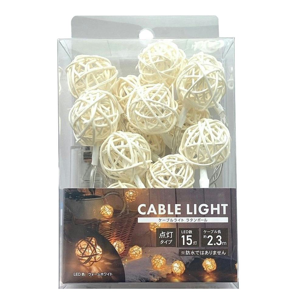 インテリアに最適!ケーブルライト(ラタンボール) LED15灯 2.3m 点灯タイプ