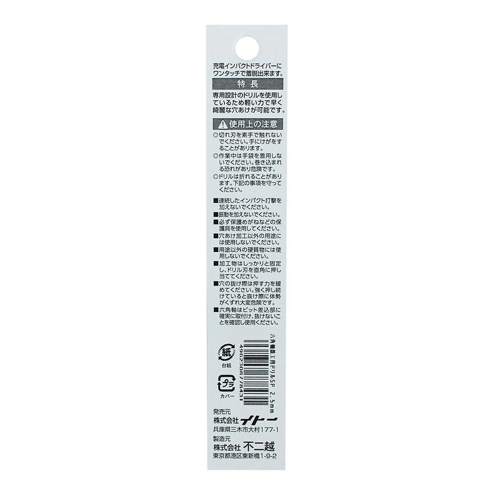 ナチ 六角軸鉄工ドリルSP 2.5mm PB