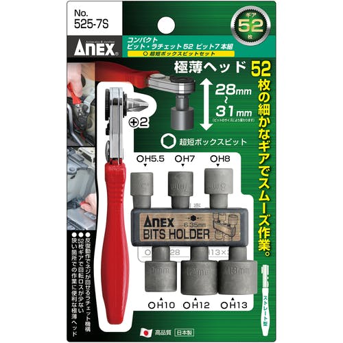 【CAINZ-DASH】アネックスツール コンパクトビット・ラチェット52 超短ボックスビットセット ストレート型 525-7S【別送品】