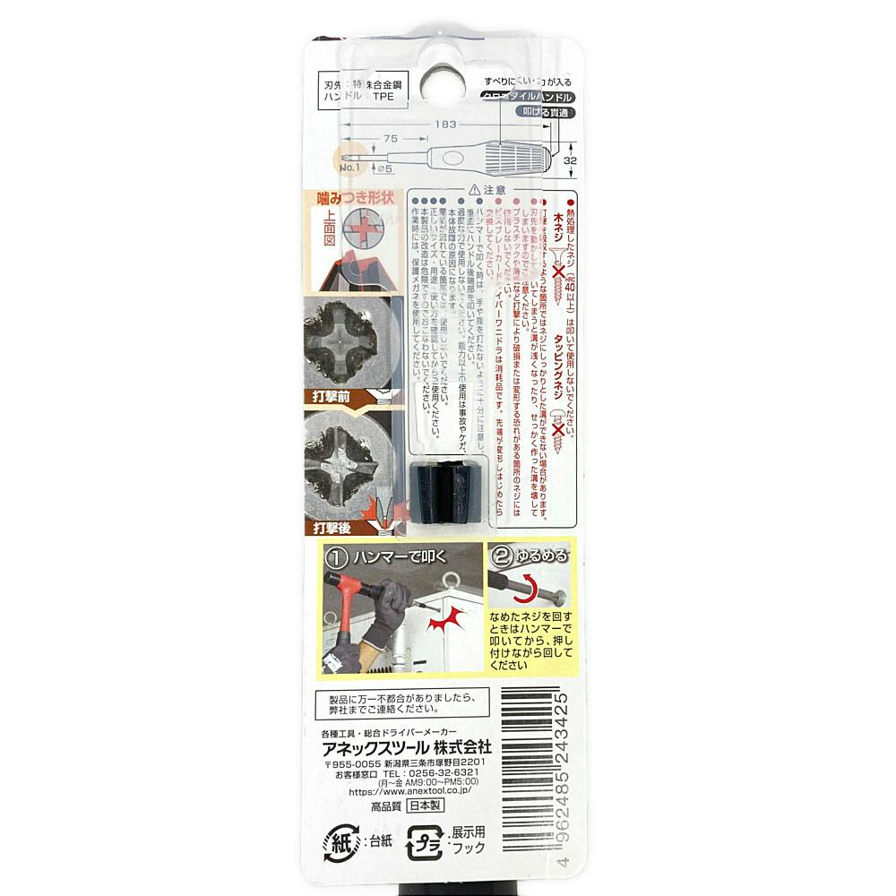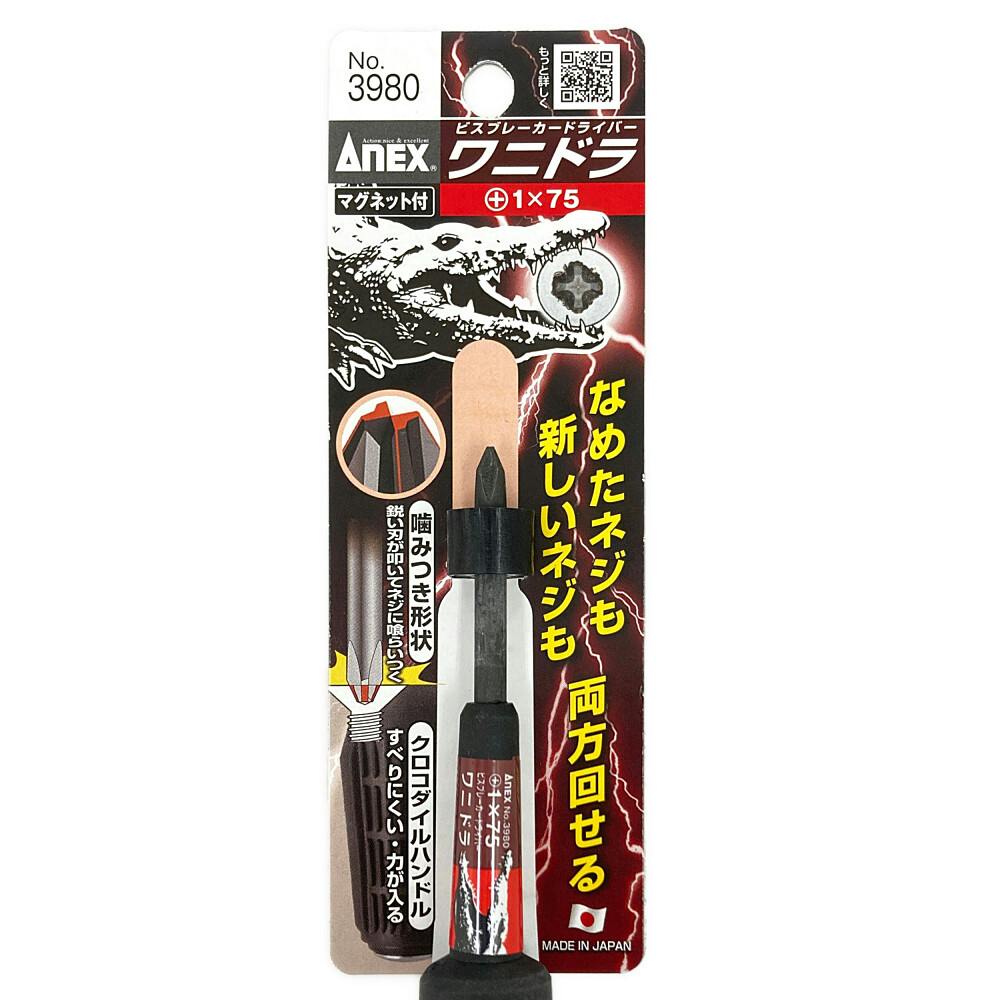 ANEX アネックス グリップドライバー ビズブレーカードライバー ワニドラ 刃先+1×軸長75mm 3980-1-75