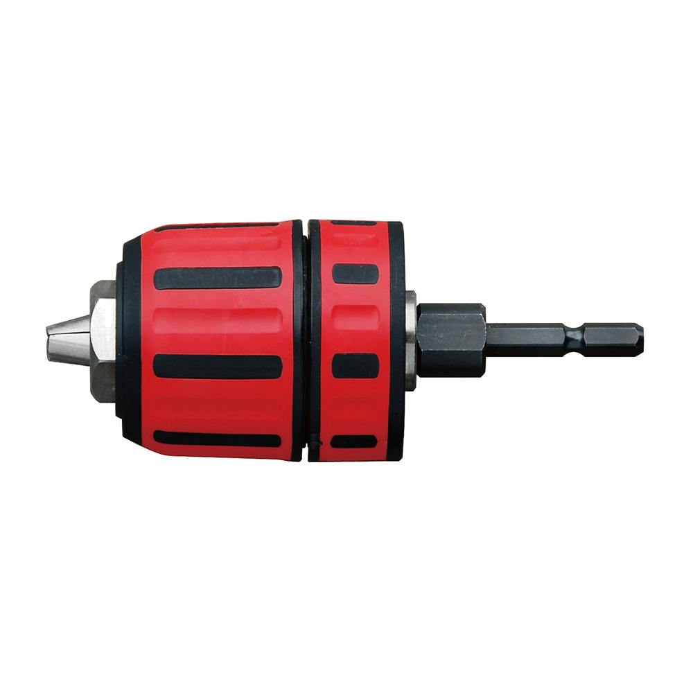 ●丸軸シャンクが掴めるので、ドリルで穴あけや、軸付砥石で研削作業が可能●開閉でキーを使用しないキーレス仕様(手だけで締めこめます)●手に優しいラバーグリップ●ドリルの噛みこみ時には解除用ナットを使い取外しが簡単●耐久性抜群の強靭六角シャンク仕様