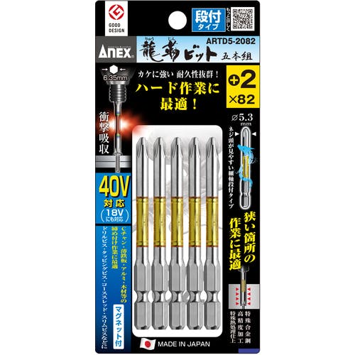 【CAINZ-DASH】アネックスツール 龍靭ビット5本組 段付 +2×82 ARTD5-2082【別送品】