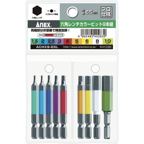【CAINZ-DASH】アネックスツール 六角レンチカラービット 9本組 ACHX9-65L【別送品】