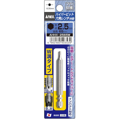 【CAINZ-DASH】兼古製作所 ハイパー六角レンチビット W溝タイプ H2.5×65 AHHX-2565W【別送品】