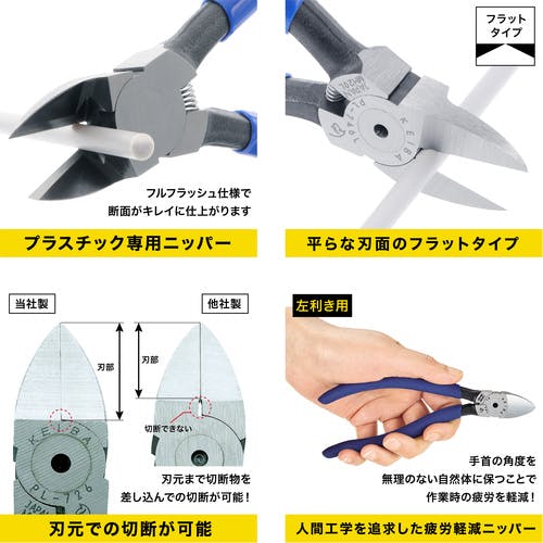 【CAINZ-DASH】マルト長谷川工作所 エルゴニッパー プラスチック用 左利き用(刃先形状フラット) 150 PL-746L【別送品】
