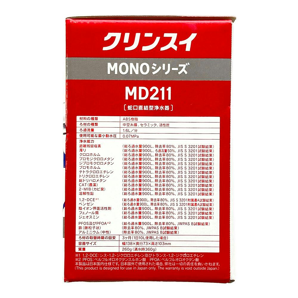 ●シャワーモードで約50%節水 ●浄水グレード/HIGH GRADE ●MONOシリーズ/MD211 蛇口直結型浄水器