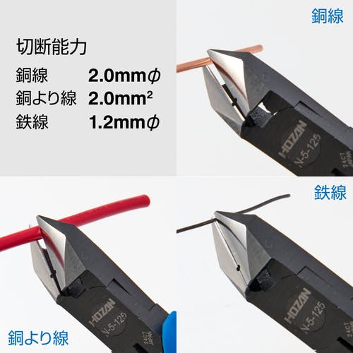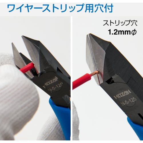 【CAINZ-DASH】ホーザン ストリップ穴付斜ニッパー 切断能力:鉄線Φ1.2、銅線Φ2.0 N-5-125【別送品】